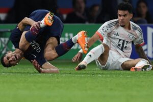 تعرض النجم المغربي أشرف حكيمي لإصابة خطيرة في الكاحل الأيسر بعد تدخل عنيف من لاعب بايرن ميونيخ الكولومبي لويس دياز…